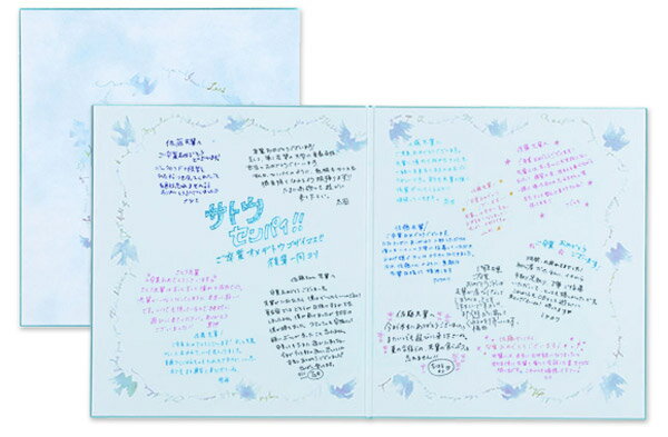 開くと一般的な色紙の2倍のスペースで、たっぷり寄せ書きを書いたり、写真やプリクラを貼ったりと自由にお使いいただけます。