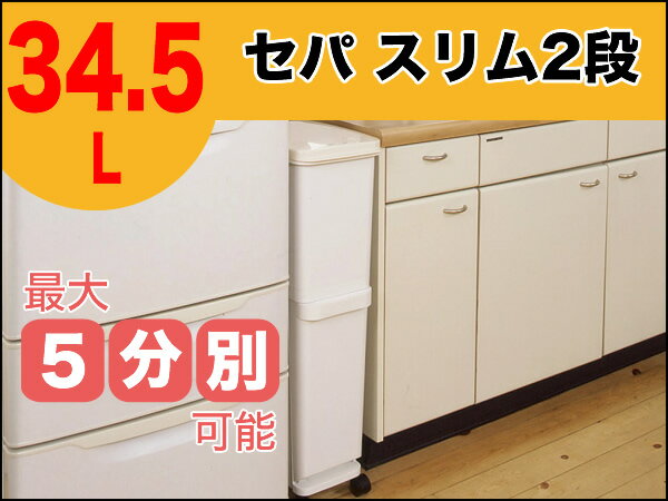 セパ スリム2段 34.5L ホワイト 5分別 シンプル ゴミ箱分別 ぶんべつ ペダル式 抗菌効果 抗菌 清潔 丸洗い ごみばこ ごみ箱